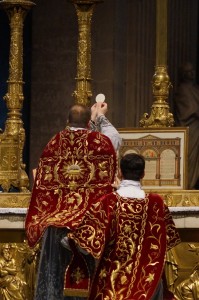 Parce que cette liturgie met l’homme à genoux devant Dieu, elle répond à ce que le bienheureux Jean-Paul II appelait à raison « l’apostasie silencieuse ». Elle répond à la folie d’un monde sans Dieu en replaçant Dieu au centre, en façonnant par ce caractère christocentrique – selon la belle expression de Benoît XVI – la piété des peuples . Elle a une grande puissance de rayonnement. Elle attire car elle est pleine d’intériorité. Aux âmes qui ont soif d’absolu, faim de Dieu, elle donne un aliment solide. Elle nourrit la piété. Elle fait goûter combien est bon le Seigneur. Cette liturgie est une école de sanctification. C’est un trésor qui appartient à toute l’Eglise, dont tous sont héritiers, auquel tous les fidèles ont le droit de puiser, comme l’a reconnu le Motu proprio Summorum Pontificum .