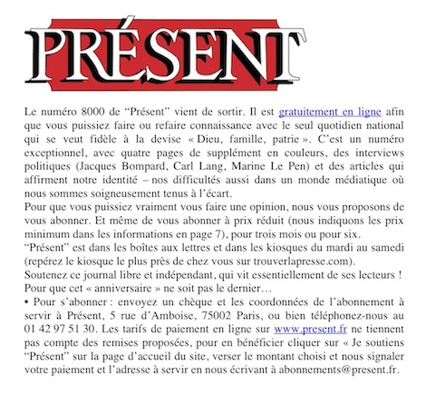 8 000ème numéro du quotidien : Présent vous fait une offre…