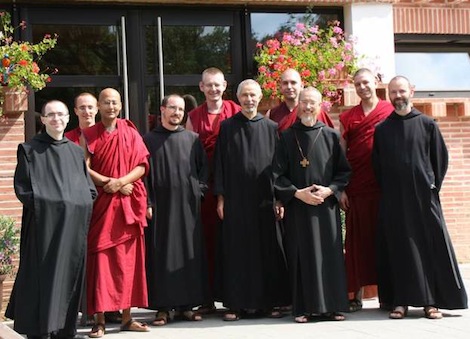Voici une photo intéressante. Tout sourire autour du Père Abbé, des moines bénédictins de l’abbaye d’En Calcat dans le Tarn – abbaye qui a décidé cette année de ne pas installer de Crèche dans son église abbatiale – et des moines bouddhistes du monastère Nalanda (tradition Gelupta, une des quatre écoles majeures du bouddhisme tibétain) à Lavaur, également dans le Tarn. À En Calcat, le dialogue inter-religieux, ça les connaît… D’où cette visite de l’abbaye bénédictine au monastère bouddhiste. Toutefois, les plus sagaces des lecteurs de Riposte Catholique auront noté un détail qui ne manque pas de piquant. Sauraient-il le préciser dans un commentaire pour l’édification de tous ? Merci…