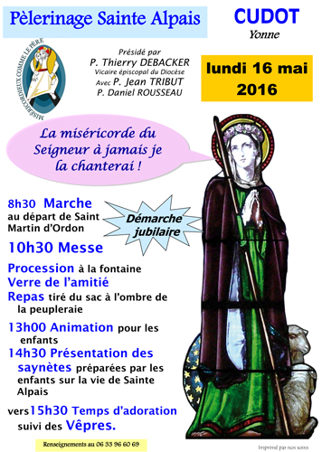 Le diocèse de sens Auxerre organise son pèlerinage de Pentecôte à Cudot auprès de sainte Alpais, le 16 mai 2016.
