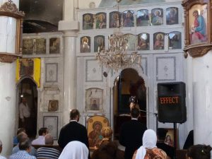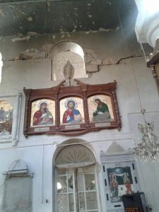Daraya est une ville proche de Damas qui vient de passer intégralement sous le contrôle du gouvernement syrien le 26 août 2016. Après accord avec le rebelles, les autorités de Damas ont pu exercer leur autorité sur une autre partie de cette zone. Comme on peut le voir dans ces photos, la divine liturgie byzantine a été célébrée dans l’église grecque-orthodoxe de Sainte-Thècle (Mar Taqla). Pour information, le couvent Sainte-Thècle de Maaloula, village chrétien araméen non loin de Damas, avait été pillé par les djihadistes en 2013-2014. Les reliques de Sainte Thècle ont ainsi disparu, probablement écoulées dans un marché turc.