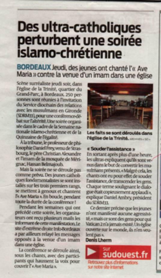 Bordeaux : des catholiques empêchent l’intervention d’un imam dans une église