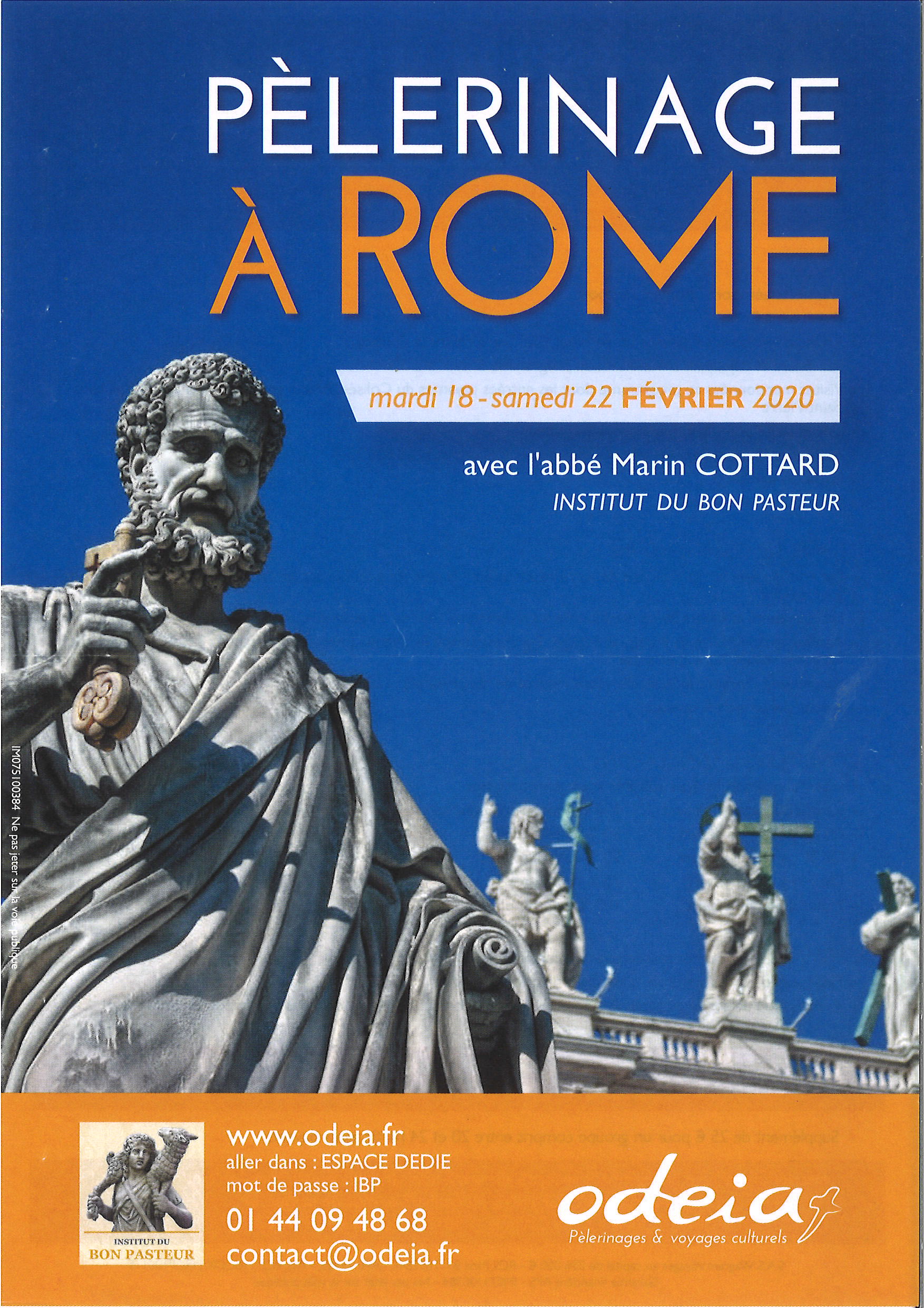 L’Institut du Bon Pasteur accompagne un Pèlerinage à Rome du mardi 18 février au samedi 22 février 2020.