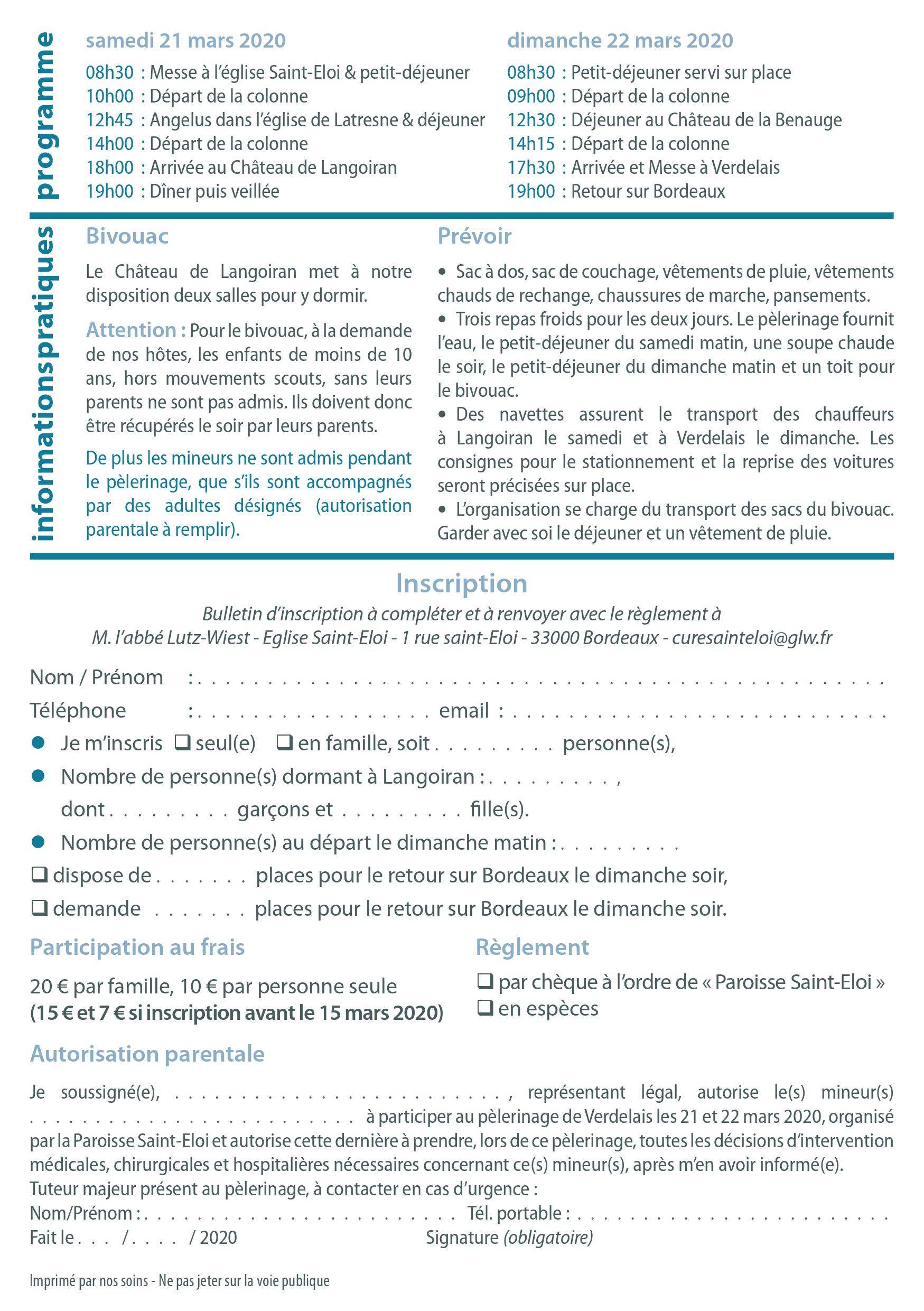 Comme les années passées, la Paroisse Saint-Eloi (Institut du Bon Pasteur) de Bordeaux vous convie à son pèlerinage à Notre-Dame de Verdelais les 21 et 22 mars.