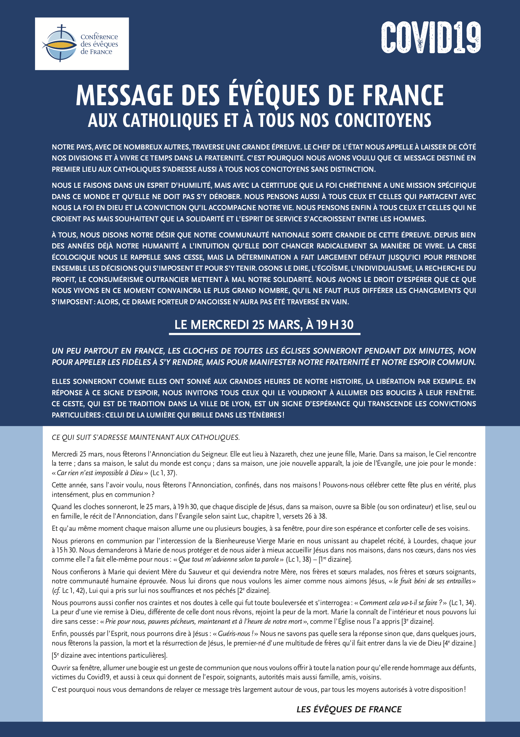 Intrigant message de nos évêques invitant pour le 25 mars les catholiques à mettre une bougie à leur fenêtre. Mais il y a une phrase qui interroge :
