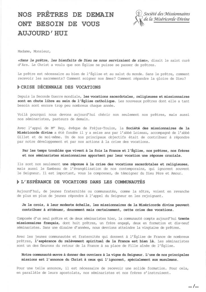 Soutenir les Missionnaires de la Miséricorde Divine
