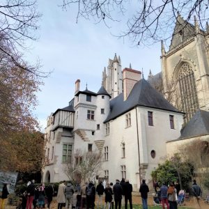 Ce dimanche à partir de 11h30, environ 75 fidèles de la messe traditionnelle – mais aussi des fidèles de diverses paroisses de Nantes qui les ont rejoint – ont participé à un chapelet « d’union et d’espérance « dans les jardins de la Psalette, le plus beau square de Nantes, situé sur le flanc sud de la cathédrale toujours meurtrie par l’incendie de juillet 2020 et interdite au public.