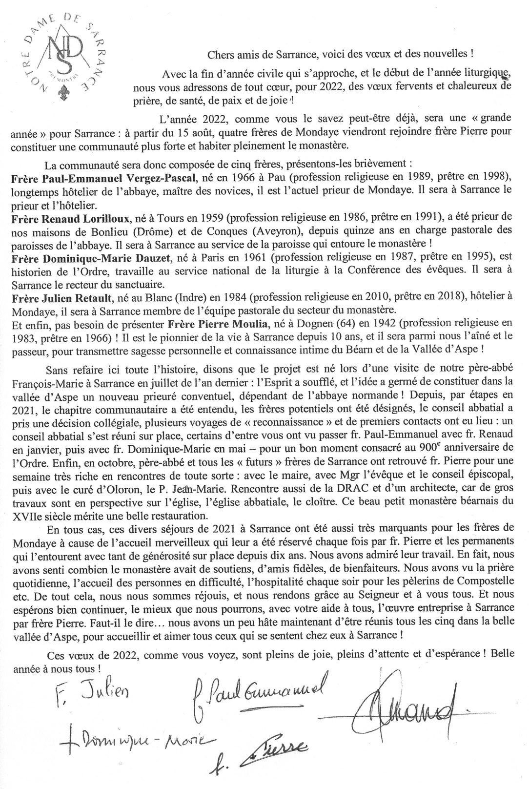 Déjà présents à Tarbes, les prémontrés de l’abbaye de Mondaye vont bientôt fonder un nouveau prieuré dans les Pyrénées, à Sarrance. Le prieur en sera le frère Paul-Emmanuel, qui était jusqu’à présent prieur de l’abbaye de Mondaye :