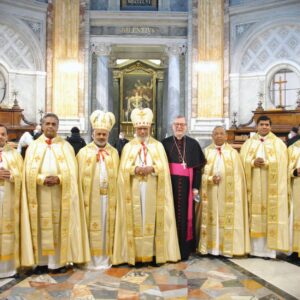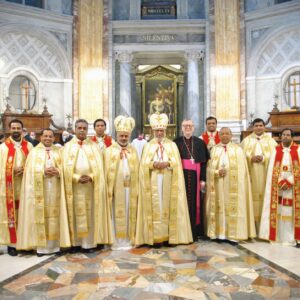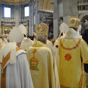 On notera la présence de plusieurs prélats de rit syro-malabar, comme le cardinal George Alencherry , archevêque majeur (c’est le plus grand titre avant celui de patriarche au sein d’une Église orientale) d’Ernakulam-Angamaly (Inde), Mgr Thoma Elavanal, évêque de Kalyan (Inde), de Mgr Joseph Srampickal, évêque de Grande-Bretagne, mais également celle de Mgr Claudio Gugerotti, nonce apostolique au Royaume-Uni. La cathedra Petri serait-elle donc indifférente à cette beauté à laquelle l’ usus antiquior, fort malmené en ce moment, participe ? Pour ce qui relève du rite oriental, non.