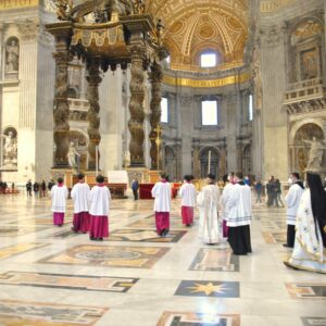 Dans le cadre d’une conférence liturgique qui s’est tenue à Rome ces derniers jours, plusieurs responsables d’Églises catholiques de rite oriental ont eu l’occasion de célébrer à l’autel de la chaire de Saint-Pierre. Cette conférence était organisée par la Congrégation pour les Églises Orientales à Rome du 16 février au 18 février 2022 à Rome afin de commémorer le vingt-cinquième anniversaire des « Instructions pour l’application des prescriptions liturgiques du Code de Canons des églises orientales » (1996). Ce texte parle non seulement de l’identité liturgique, mais aussi du nécessaire rôle « mystagogique » de la liturgie dans ces Églises orientales. On pouvait donc y entendre de belles mélodies traditionnelles, comme on peut le constater avec cette vidéo .