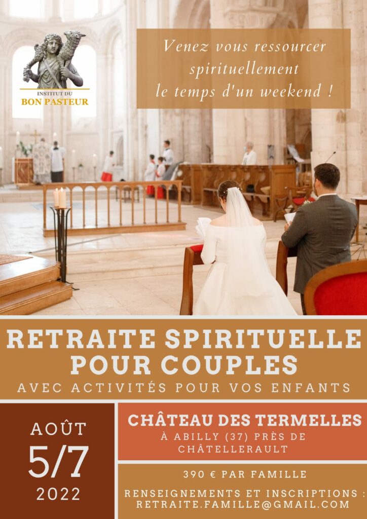 L’Institut du Bon Pasteur propose une retraite pour couples (activités pour les enfants) du 5 au 7 août :