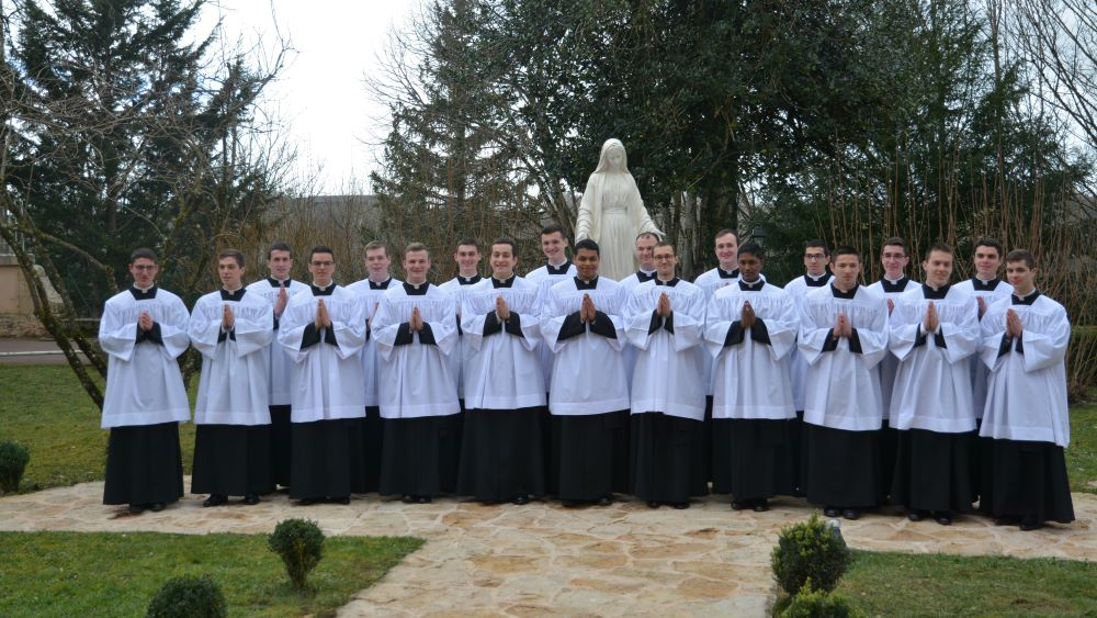 C’est en la fête de la purification de la Très Sainte Vierge Marie que vingt jeunes gens, issus de trois continents, ont revêtu la soutane au Séminaire Saint Curé d’Ars : treize Français, deux Italiens, un Anglais, un Brésilien, un Indien, un Sri Lankais et un Suisse. Accompagnés par leur famille, les jeunes séminaristes ont reçu l’habit clérical lors de la cérémonie pontificale célébrée par Son Excellence Monseigneur Alfonso de Galarreta, assisté des supérieurs de district de France et de Suisse, messieurs les abbés Benoît de Jorna et Thibaud Favre.