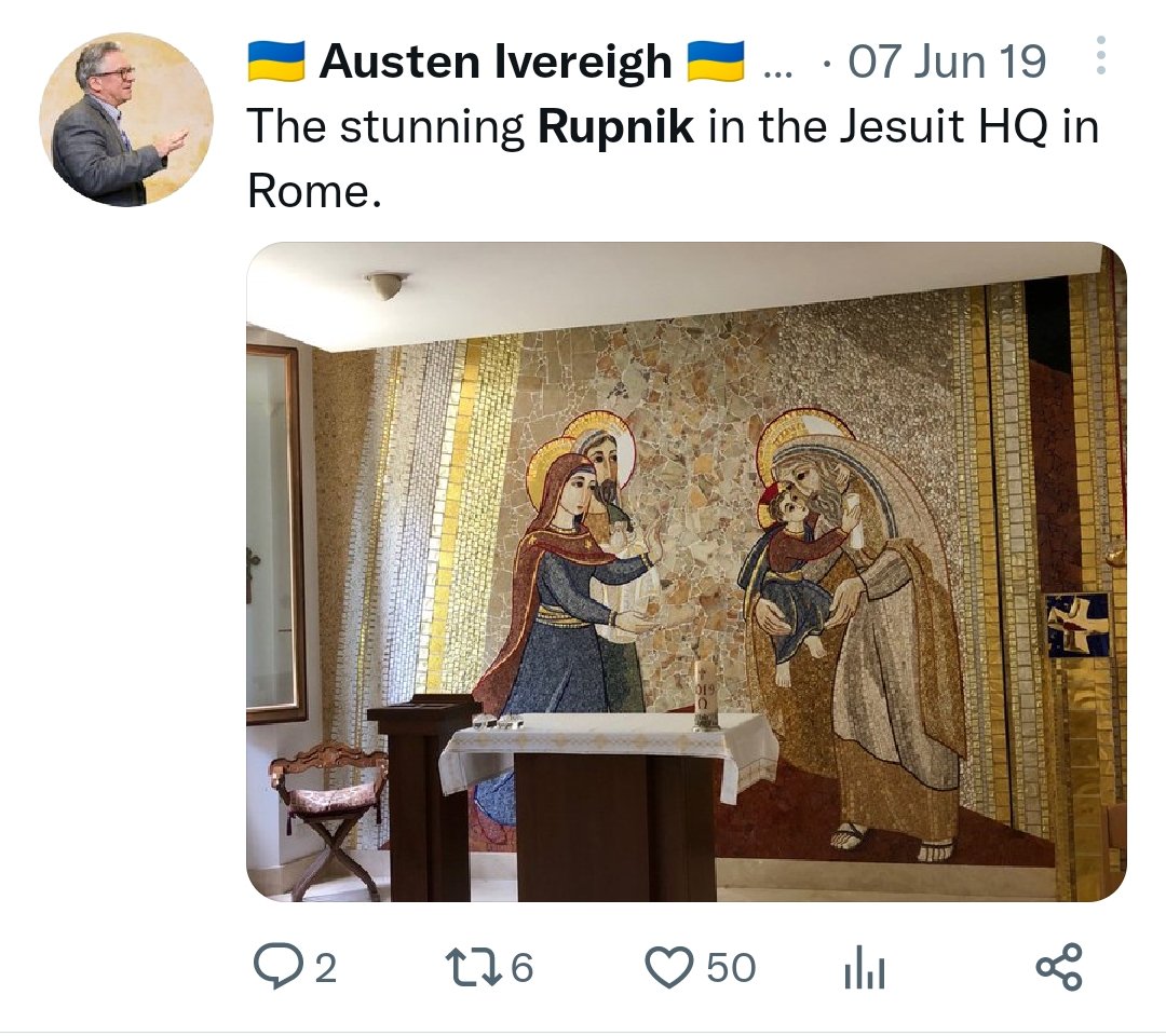 Un « superbe Rupnik dans le QG des jésuites à Rome »: c’est ce qui était écrit en 2019 dans un tweet du journaliste.