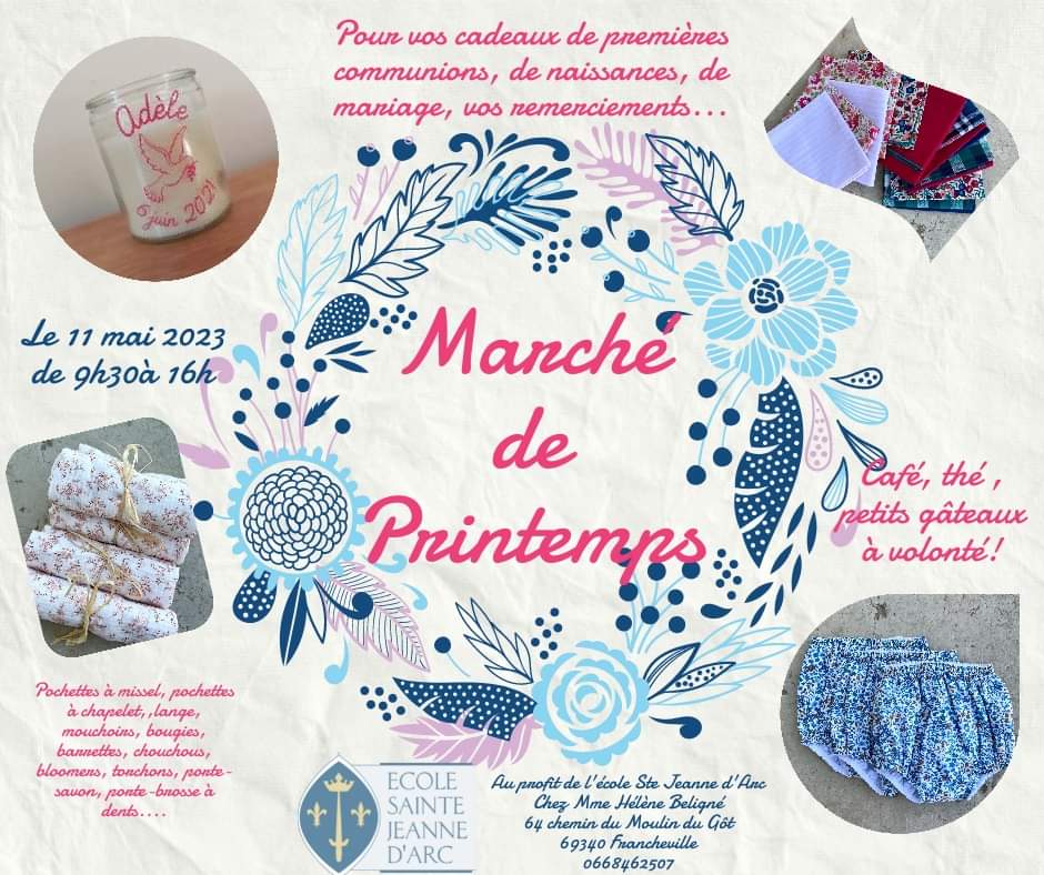 L’école organise un marché de printemps (le 11 mai) pour faire vos cadeaux pour les cérémonies qui se succèdent aux mois de mai et juin : stands de couture, de bijoux, de déco, de livres et de gastronomie !