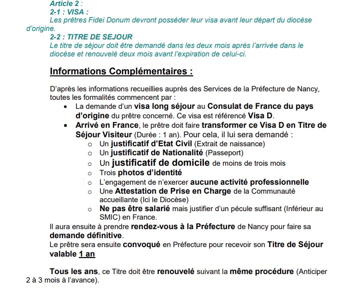 Sans oublier le rappel salutaire au sujet de l’enfer administratif français, auquel les prêtres doivent se confronter tous les ans.. alors qu’ils doivent demander à l’origine un visa long séjour en France dans leur pays d’origine, et que leur mission dure souvent de 3 à 9 ans.