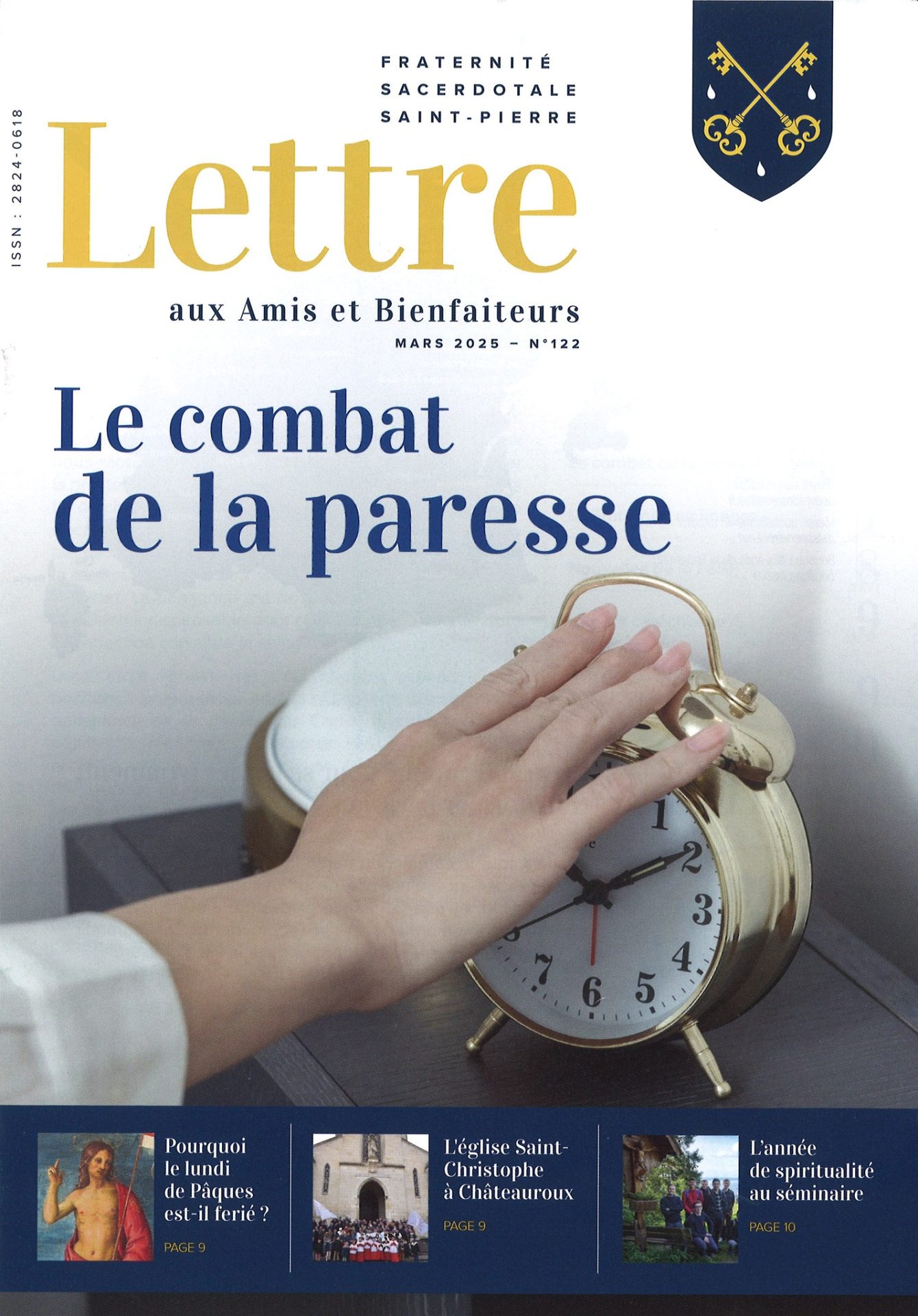 La dernière Lettre aux Amis et Bienfaiteurs de la Fraternité Saint-Pierre (Mars 2025, n°122) revient sur les dernières activités apostoliques de ses prêtres en France et sur son apostolat exercé à Châteauroux (église Saint-Christophe). Parmi les autres articles, on lira celui consacré au combat de la paresse (un effort pour le Carême) (cf ci-dessous) :