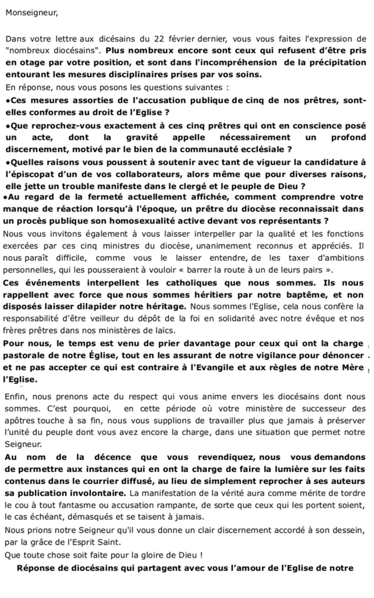 Cette lettre aurait du rester confidentielle, mais un des laïcs qui en était l’intermédiaire l’a transmise à la presse locale. L’affaire éclate, et suscite un tollé . Rentré de Paris où il était en session de formation, le vicaire général répond à ses détracteurs par communiqué, en qualifiant « d’odieux, outrageants et diffamatoires » les faits qu’on lui prêtre.