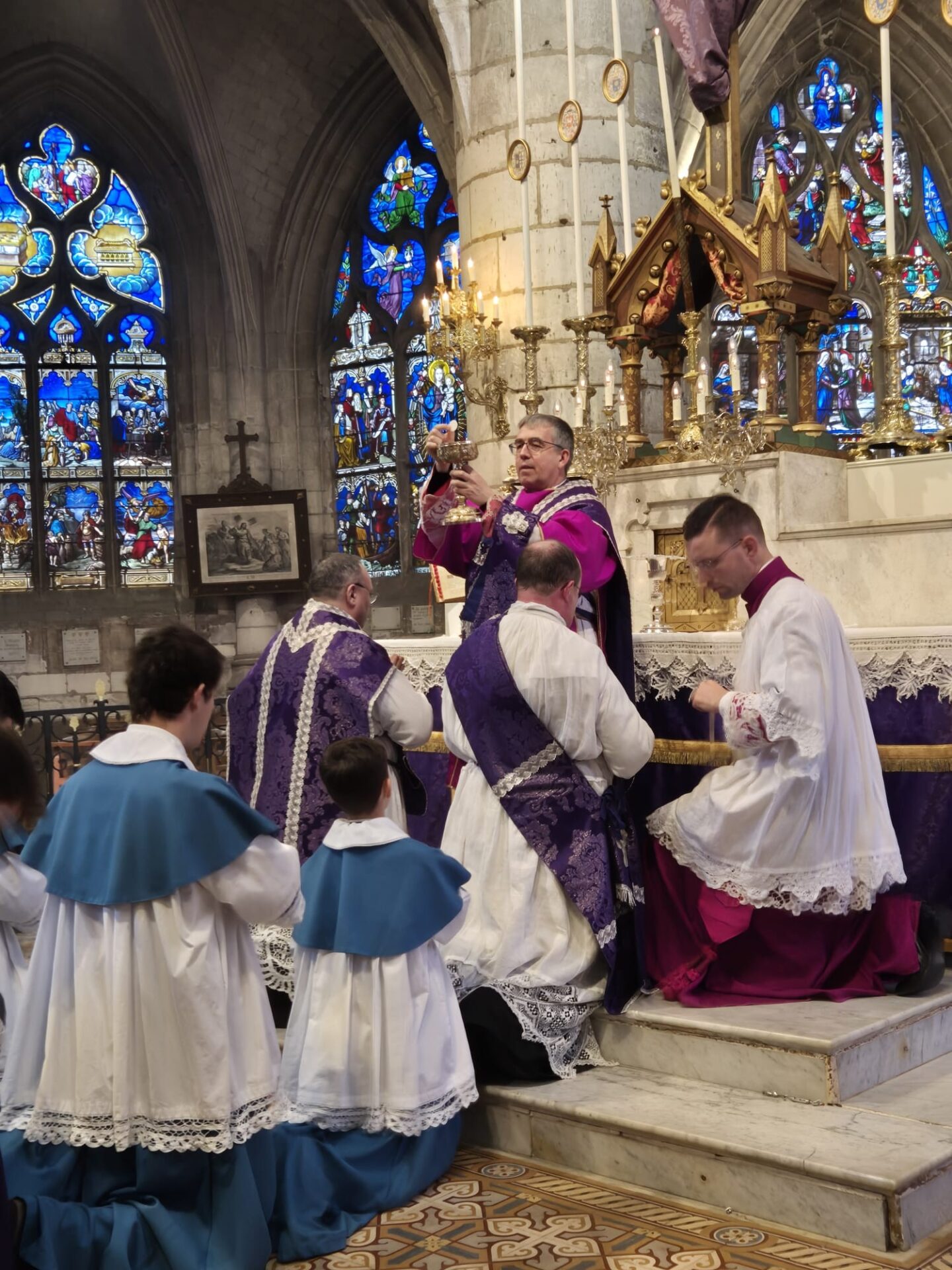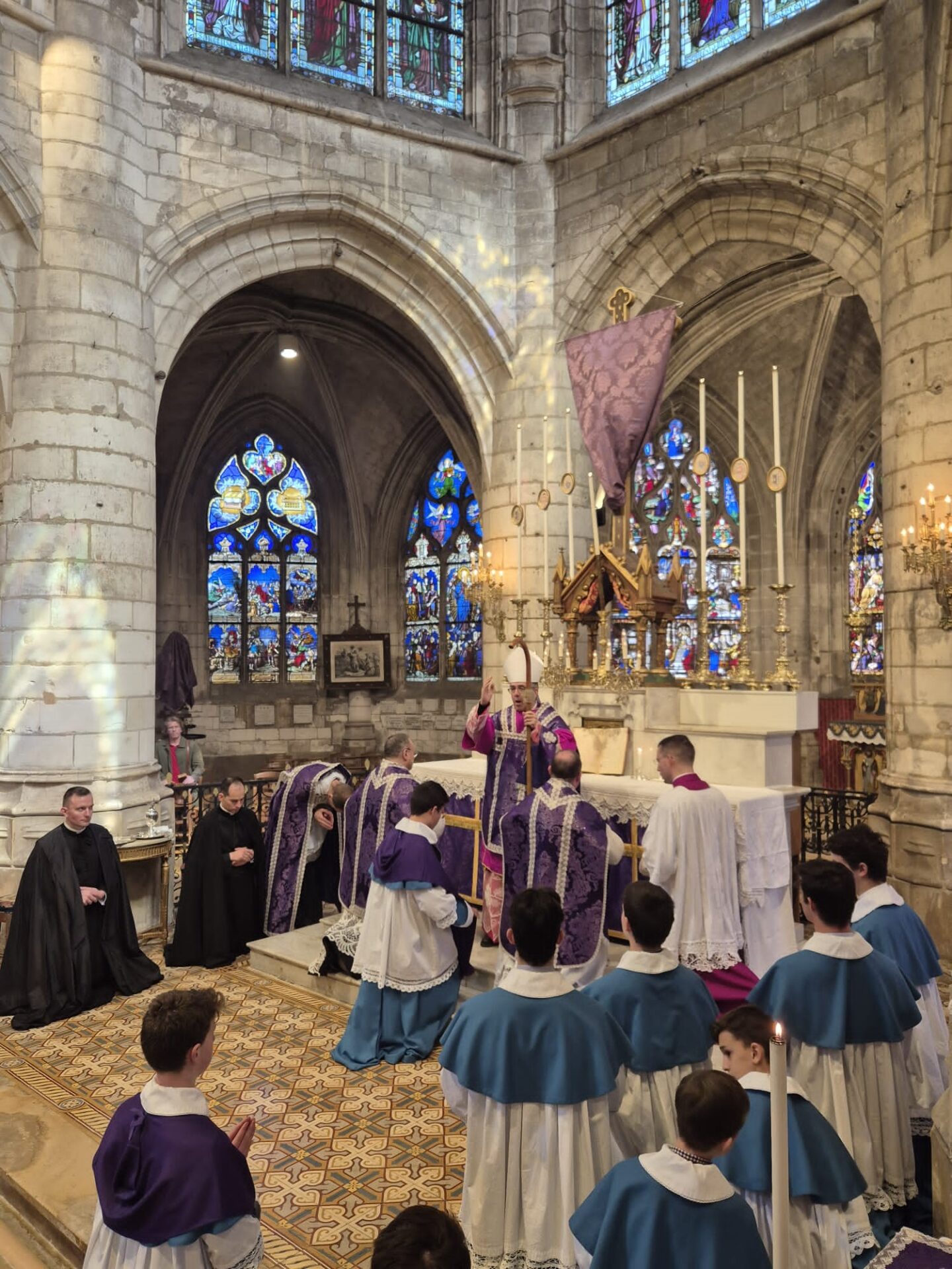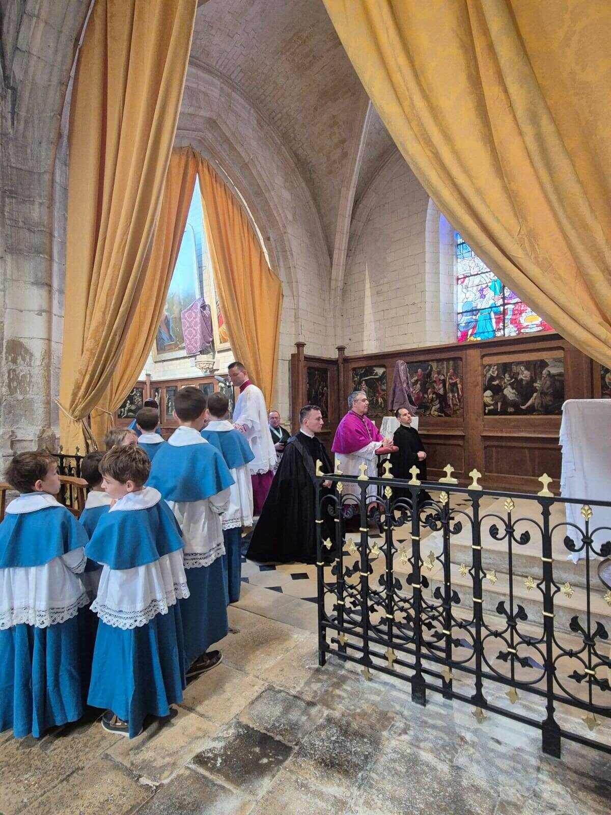 Mgr Alexandre Joly, évêque de Troyes (nommé en 2022) a célébré une messe pontificale pour le dimanche de la Passion en l’église Saint-Rémy de Troyes, apostolat e l’Institut du Christ Roi dans le diocèse de Troyes depuis une vingtaine d’années.
