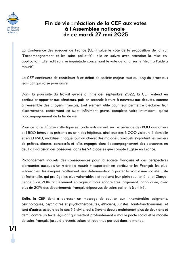 Réaction de la CEF au vote de la loi sur l’euthanasie