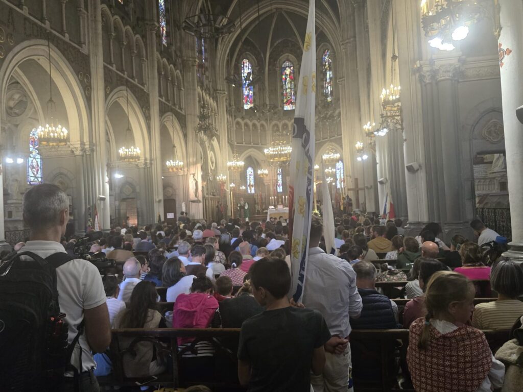 Près de 500 pèlerins se sont retrouvés samedi à Montaut (64) pour un bivouac familial avec une veillée Gascogne suivi par une adoration nocturne du Saint-Sacrement. Dimanche, le colonne s’est élancée vers Lourdes pour 17 km de marche. Le Pèlerinage a été accompagné par des prêtres communautés ex Ecclesia Dei et des prêtres diocésains. A l’arrivée au Sanctuaire de Lourdes, une messe solennelle a été célébrée à la Basilique de l’Immaculée-Conception de Lourdes par l’abbé Augustin Cayla, FSSP assisté de l’abbé Maxime Quinquis, IBP comme diacre et le Chanoine Cyprien Parant, comme sous-diacre.