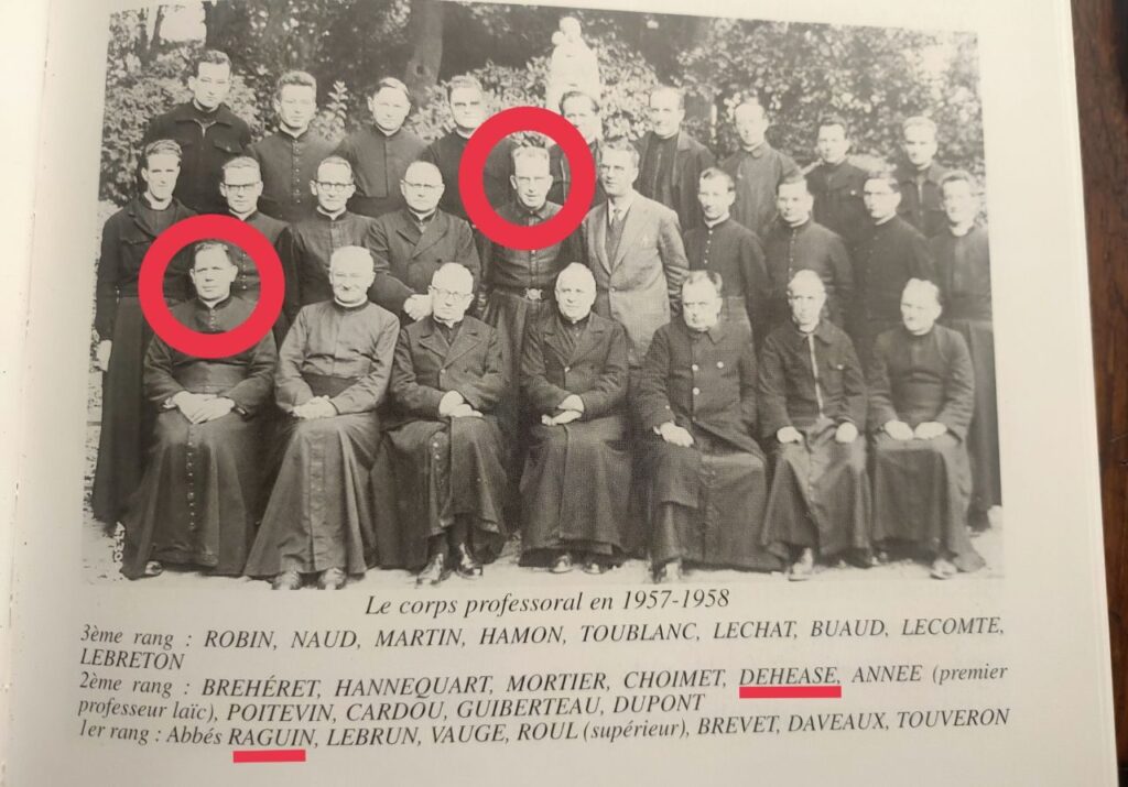 - l’abbé Dehaese ( 4 signalements), figure sur une photo du corps professoral de Saint-Stanislas en 1957/58