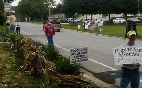 Et voici nous deux photos du jour. Elles ont été prises à Atlanta (Géorgie) devant le Feminist Women’s Health Center dont le personnel devient particulièrement “nerveux” quand arrive la vigile des 40 Days for Life . Il a même, comme on le voit sur la seconde photo, planté des yuccas épineux pour empêcher les membres de la vigile de stationner devant son avortoir : ce qui ne semble rien empêcher du tout… À noter, sur cette même photo, un panonceau en espagnol : « Choisis de donner la vie à ton bébé » , suivi du numéro de téléphone d’un centre d’aide aux femmes enceintes.